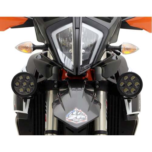 This vehicle specific driving light mount allows you to mount any DENALI driving light in the optimum location on your motorcycle. This kit includes beefy powder coated steel brackets with and M8 mounting hole and all necessary mounting hardware.