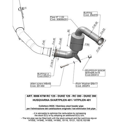 LeoVince LINK PIPE (CAT ELIM.) | STAINLESS | DUKE/RC 125>390 17>20 / SVART/VIT 401 18>19 (orig. & LeoVince exhaust)