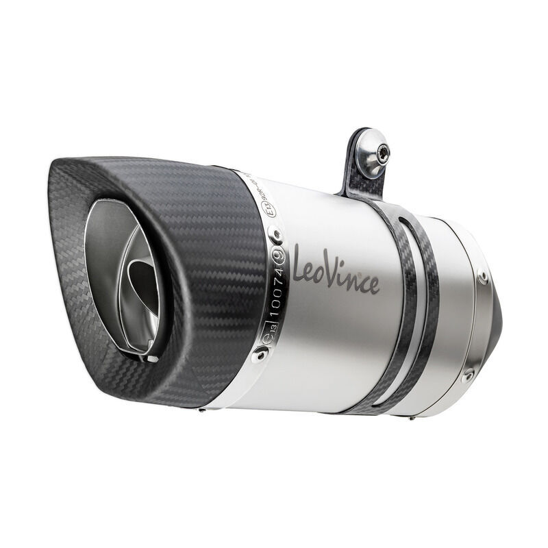 The LV PRO slip-on is the perfect combination between racing look and compactness. It is the result of the LeoVince research of the best materials and craftmanship, and it sports a new aggressive racing look with its "Shark Cut" end cap, which, combined with the small size, fully enhances the aesthetics of your bike.