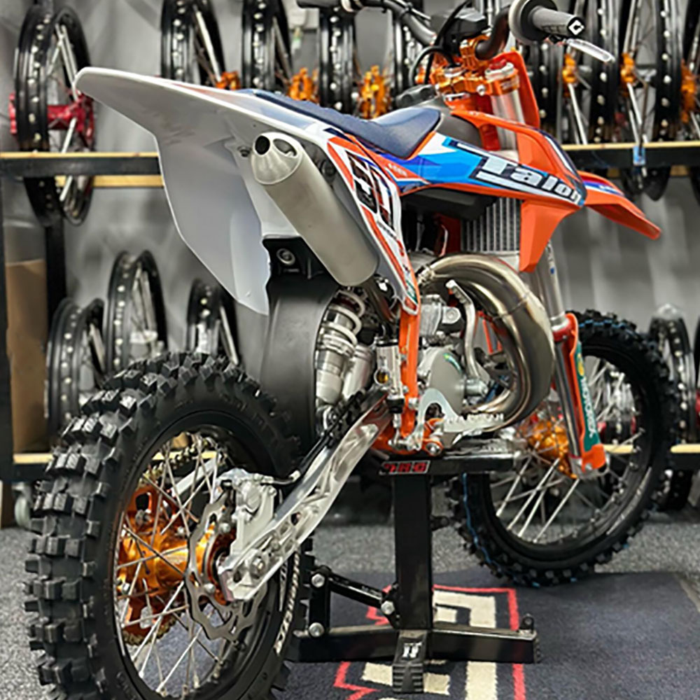 - Increased compliance of the swingarm allows for a more confidence-inspiring feel so that youngsters can push the limits harder through rough sections and have better control during hard landings.
