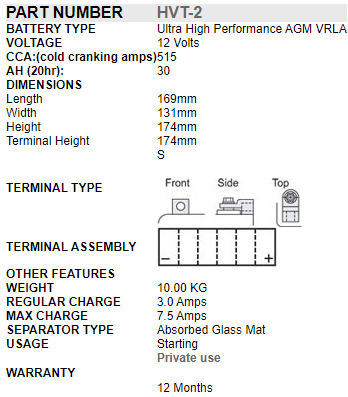 | Type | AGM Battery |