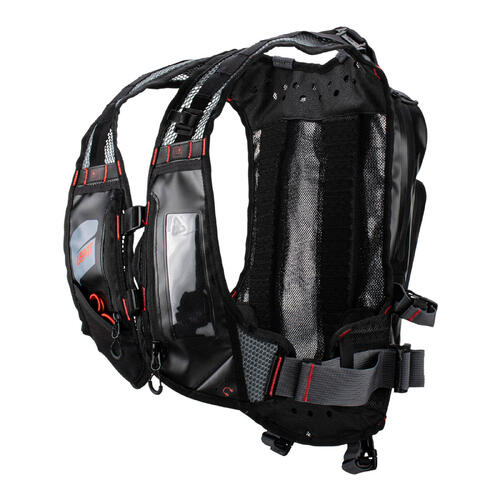 Leatt uses a 2.0L Cleantech vertical hydration bladder with an auto shut-off bite valve feed tube routing can be either over the shoulder or under the arm and cargo storage is 5.0L. The lightweight unique chest harness system is fully adjustable across the chest and around the waist ensuring a rock-solid fit with Airline back ventilation that helps keep airflow between the bag and your back sweat is kept to a minimum.