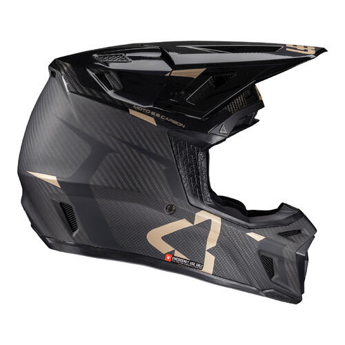 The Moto 9.5 carbon helmet is the pinnacle of high-performance protection. It features Leatt’s patented 360º Turbine Technology where the energy absorption of the turbines helps reduce the low-speed impact energy to the head and brain. Crafted from a carbon matrix shell the helmet is lightweight yet robust. It has four densities of impact foam to absorb and disperse collision forces. The visor and cheek pads feature quicK-release functionality and the hydration side port is compatible with an optional hands-free kit.