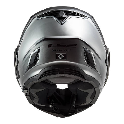 The Valiant II’s lightweight aerodynamic shell is made from LS2's proprietary Kinetic Polymer Alloy (KPA). This proprietary material uses nanotechnology to blend microscopic particles of aramid fibres into a high-end polymer. This material is absolute state-of-the-art in energy management materials offering a bit of built-in flexibility to disperse energy the penetration resistance of high-end fibre products and a lightweight shell. 2 shell sizes to allow for a perfect fit and the smallest shell possible. A full metal latch assures the chin bar will stay locked when closed and an LS2 exclusive design keeps the chin bar securely in place at the back of the helmet when it is in the open position.