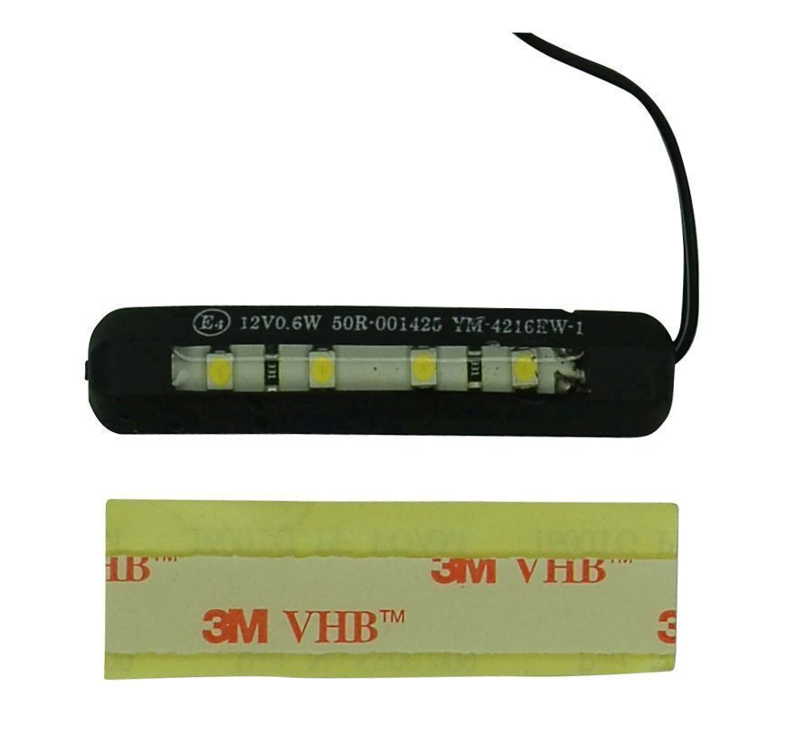 Number plate light Led bulbs so they last longer Four led bulbs 60mm x 12mm x 5mm Double sided tape securing strip