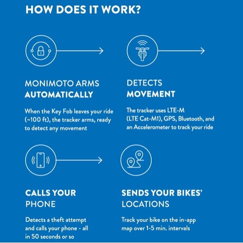 Monimoto 7 is brand new Monimoto model. It's a smart GPS tracker for motorcycles, mopeds, scooters and other vehicles. The new Monimoto version is even smaller, easier to install and compact. This model (Monimoto 7) uses LTE-M (LTE Cat-M1). It is powered by 2 long-life batteries, so even if the vehicle's battery is dead your ride will still be safe. Monimoto comes with an embedded eSIM card. $79 AUD per year ongoing subscription required.