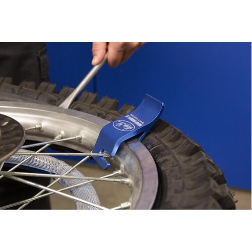 - Hooks over spoke and pushes bead down on opposite side of tire from tire irons