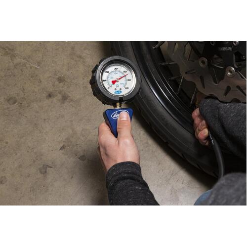 - Pressure range of 0-60 psi is ideal for checking sportbike tires