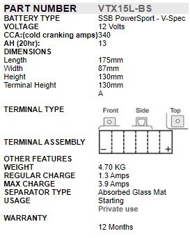 SSB POWERSPORT MOTORCYCLE BATTERY - AGM
