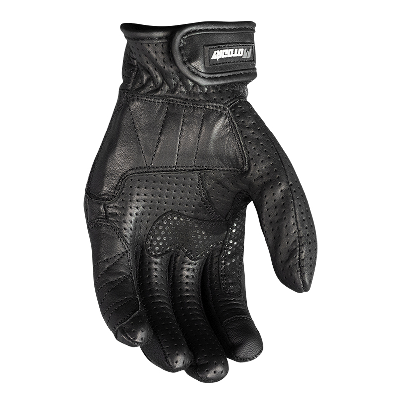 (SUMMER) Short URBAN style Perforated Aniline Leather best quality & Cool for Summer Pre Curved fingers CARBON Knuckle protection Reinforced finger knuckle protection Wide Open - Easy Fit cuff style Reinforced palm & side protection Soft Feel stretch finger panels, for Rider Comfort Velcro wrist strap closure