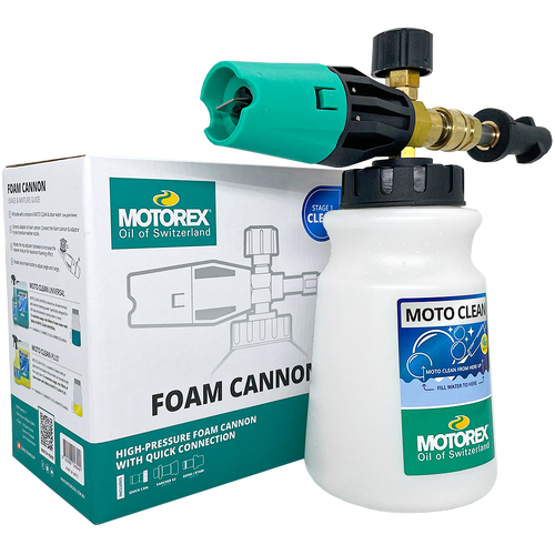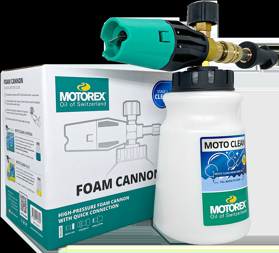 MOTOREX Foaming Cannon maximises the cleaning performance and coverage when used with our powerful MOTO CLEAN bike wash.