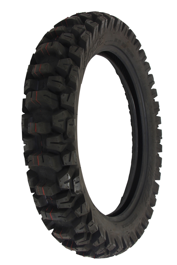 Motoz Tractionator Desert Hard Terrain Tyres are intended for intermediate-hard terrain and rally use, and cross over into adventure use very well. They offer long wear life and excellent traction in varied terrain, and are like a special desert race tyre without the expense. They excel in high speed wide open throttle cornering, deceleration/engine braking into fast corners, fast rocky fire trails and multi day rides where long tyre wear is essential. Tractiontor Desert H/T. DOT homologated. Works well on heavy bikes.