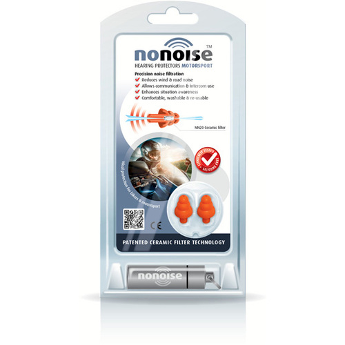 Developed over 20 years by leading experts, NoNoise MOTORSPORT Hearing Protectors are superior to traditional foam, wax or silicone earplugs. Precision-tuned, patented ceramic filters ensure maximum protection from dangerous levels of engine, wind & road noise. Unique filtration allows conversation, sirens and horns to remain clearly audible, with no muffled effect.