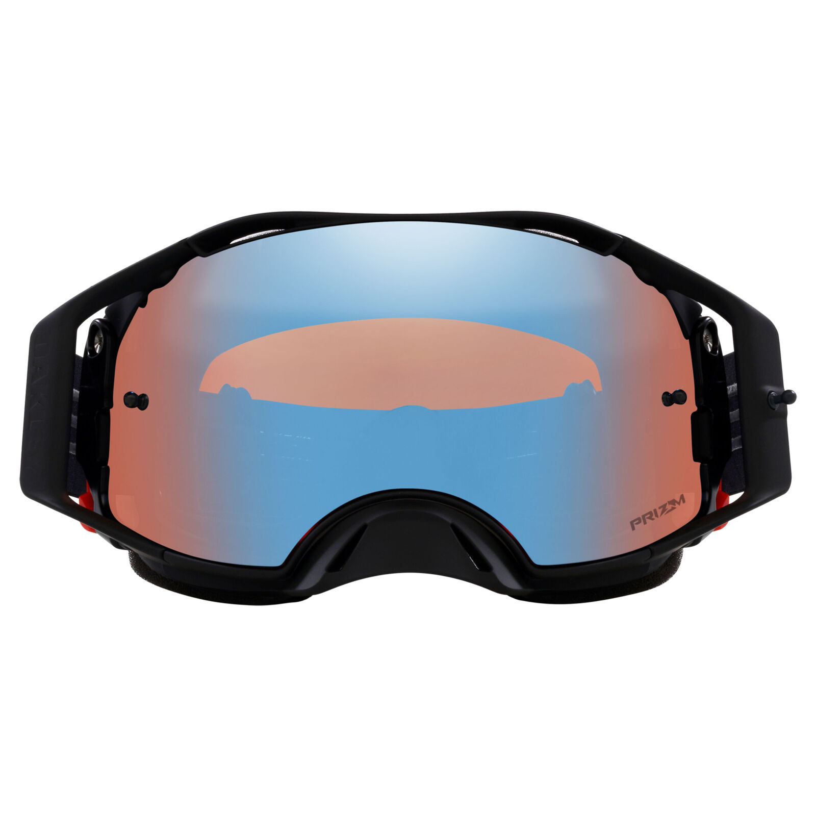 The Oakley Airbrake MX goggle represents a groundbreaking leap in motocross eyewear technology, setting a new benchmark in protection, clarity, comfort, and convenience. This innovative design features a fully serviceable goggle with high-impact resistance, utilizing Plutonite® lens material to provide unparalleled protection against UV and harmful blue light. Featuring Prizm lens technology, it significantly improves colour contrast and detail, allowing riders to better navigate varying track conditions The Airbrake MX incorporates Oakley's Switchlock® Technology, allowing for rapid lens changes to adapt to various lighting conditions effortlessly. Its expanded lens volume and wide field of vision are complemented by advanced anti-fog coating and efficient ventilation to keep your view clear. The rigid O Matter® chassis and pliable faceplate ensure a comfortable fit, while the dual-adjustable strap with silicone lining provides a secure, custom fit. With its robust construction and all-day comfort, the Oakley Airbrake MX goggle redefines what it means to be equipped for high-performance riding. With high-impact resistance that makes you invincible, this landmark of technology is the first even MX design with a lens of pure Plutonite™. It's the new standard of protection and it lets you take the adapt-and-conquer approach with Oakley Switchlock™ Technology, the secret to fast and easy lens changing. The view is wide open, the comfort is beyond reason and the performance leaves other goggles scrambling for second place. • Configured with Race Ready 5mm Roll-Off canisters including 2 rolls of film • Available with Prizm™ Lens Technology (as accessory lens option) - engineered to enhance contrast so you can see more detail in terrain across a variety of light conditions. • Switchlock® Lens Change Technology for fast and easy lens interchangeability • Injection-molded Plutonite® High-Impact lens material provides 100% protection against UVA / UVB / UVC & harmful blue light up to 400nm • Optically correct lens with F3 Anti-fog coating • Rigid exoskeleton with flexible O Matter faceplate conforms to your face comfortably • Triple-layer face foam fleece to wick away sweat (removable & serviceable) • Interchangeable & adjustable 40mm strap with silicone lining for a more secure fit • Engineered to fit securely with most helmets without compromising fit • Includes a stack of 7 laminated tear-offs • Includes removable nose guard • Includes standard outrigger strap attachments for conversion to tear-offs • Includes microbag for storage and lens cleaning • Meets EN 1938 standard for eyewear protection