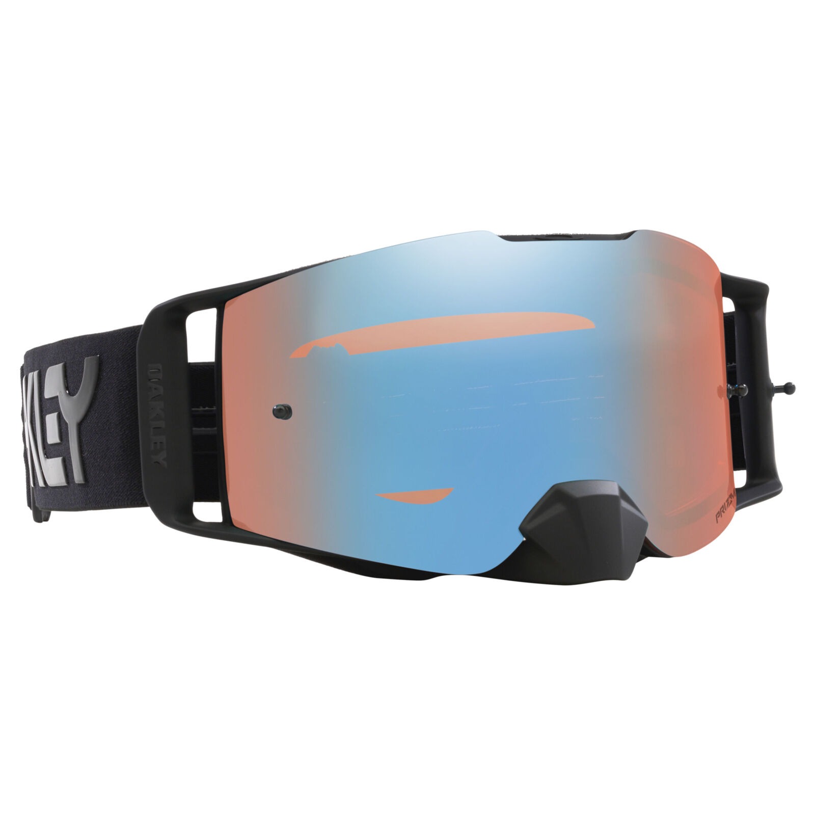 The Oakley Front Line™ MX goggle delivers outstanding performance and comfort for all riders, thanks to its innovative design and cutting-edge technology. Equipped with Prizm lens technology, it enhances colour contrast and clarity, helping riders navigate varying track conditions with greater accuracy. The goggle features a large, extended lens that maximizes peripheral vision and minimizes blind spots, while its flexible frame ensures a secure fit and durability. The adjustable strap and triple-layer foam provide superior comfort and a snug seal, effectively managing sweat and providing all-day comfort. These attributes make the Oakley Front Line™ MX goggle a top choice for both recreational and competitive riders seeking enhanced vision and protection With a Large to medium sized fit, Front Line™ MX is optimized for a wide variety of faces and is engineered to fit perfectly with most helmets. Designed with Oakley's Ridgelock Technology, changing lenses is quick and easy while still allowing for a complete lens seal to prevent harsh conditions from penetrating into your goggle. Discreet frame notches at temples provide compatibility with most prescription eyewear. • Available with Prizm™ Lens Technology - engineered to enhance contrast so you can see more detail in terrain across a variety of light conditions. • Ridgelock Lens Change Technology for completely sealed rimless look and quick lens changing capability • Injection-molded Plutonite® High-Impact lens material provides 100% protection against UVA / UVB / UVC & harmful blue light up to 400nm • Optically correct lens with F3 Anti-fog coating • Glare reduction and tuned light transmission of Iridium® lens coating (optional) • Outrigger strap attachments for a balanced fit (Race Ready Roll-Off accessory optional) • Triple-layer face foam fleece to wick away sweat • Interchangeable & adjustable 50mm strap with silicone lining for a more secure fit • Engineered to fit securely with most helmets without compromising fit • Discreet frame notches at temples provide compatibility with most prescription eyewear • Includes a stack of 7 perimeter-sealed laminated tear-offs • Includes removable nose guard • Includes microbag for storage and lens cleaning • Meets EN 1938 standard for eyewear protection
