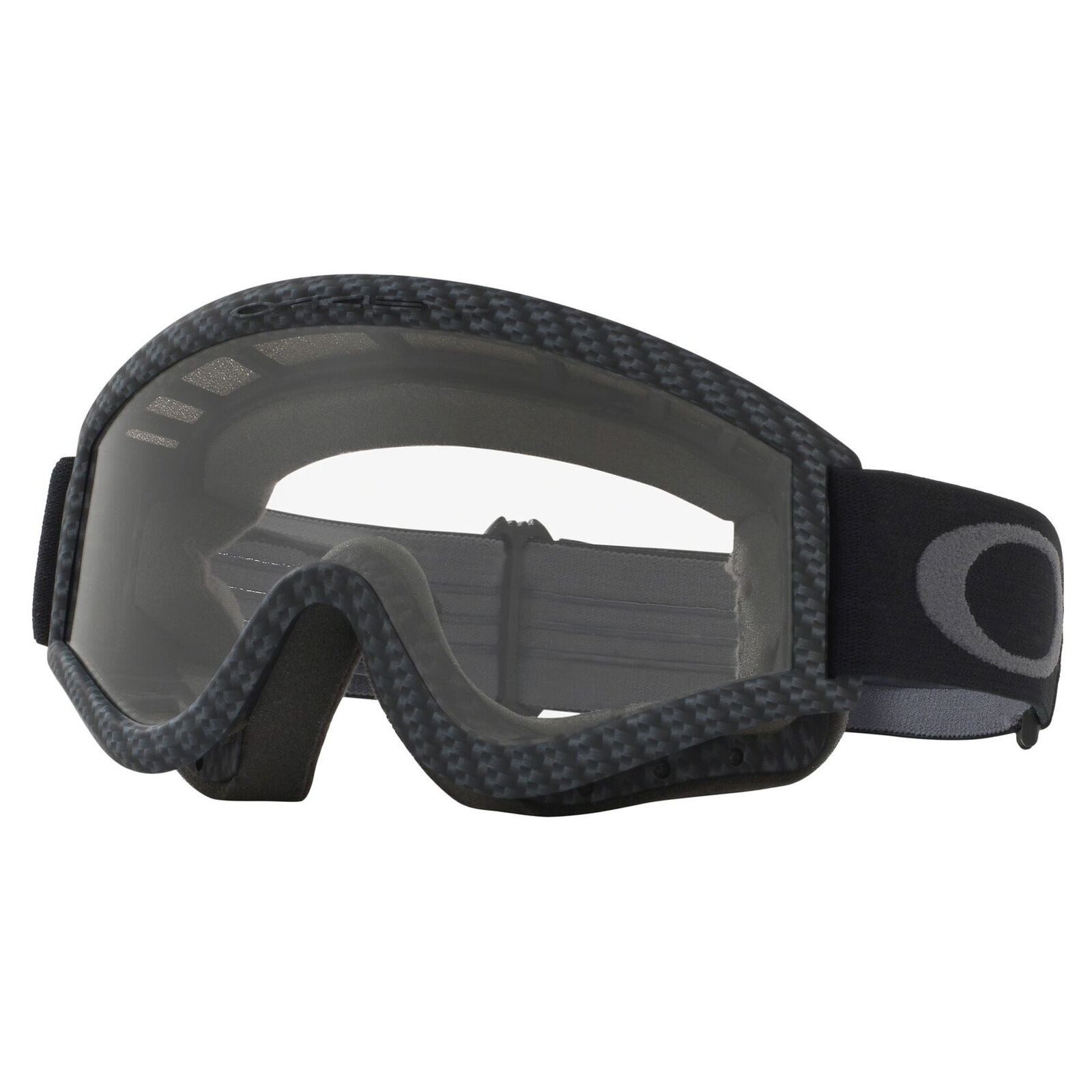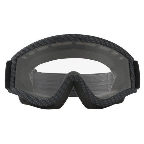 Prescription eyewear? No problem. The Oakley L-Frame goggles are designed to fit over your prescription glasses. Keep your vision 100%! When you're pounding through the rhythm section and the track turns to fuzz, it's because your contact lens has bailed. We designed the Oakley L FRAME™ to fit over your prescription glasses so you can leave the contacts in their case. This goggle includes proven design features like flexible urethane construction, a non-slip silicone treated strap, triple-layer face foam with moisture wicking, and the clarity of an optically pure LEXAN® lens. It's fully compatible with an ATFM half mask and the Oakley laminated tearoff system (sold separately). Made to fit over most prescription eyewear, the comfortable design of L Frame™ conforms around eyeglasses with sleek contours that stay low profile while the lens fights fog buildup. • Closed-cell vent foam keeps out dust and sand particles • Include only clear lenses • Discreet frame notches at temples provide compatibility with most prescription eyewear • Flexible O Matter™ frame optimized for comfort, fit and maximized peripheral view • Impact-resistant lens material provides 100% protection against UVA / UVB / UVC & harmful blue light up to 400nm • Scratch-resistant lens with F2 Anti-fog coating • Triple-layer face foam fleece to wick away sweat • Adjustable 4mm strap with silicone lining for a more secure fit • Engineered to fit securely with most helmets without compromising fit • Includes microbag for storage and lens cleaning • Meets EN 1938 standard for eyewear protection