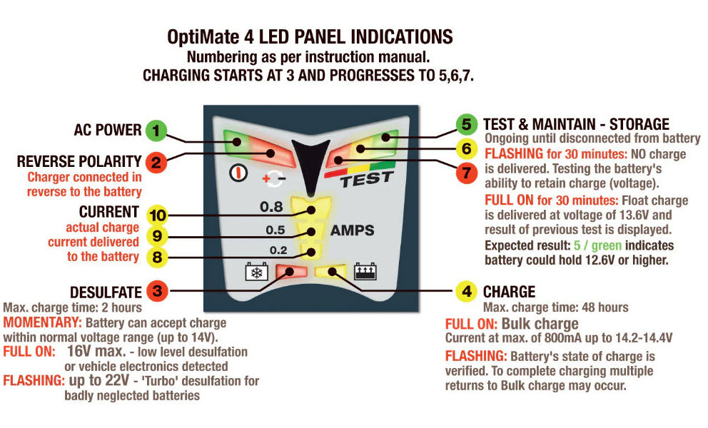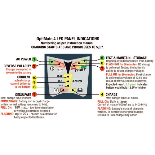 The OptiMATE maintenance program delivers only what the battery needs, never overcharges, never undercharges.