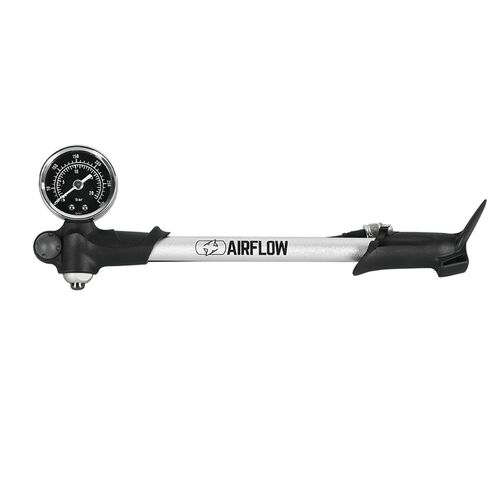 The Oxford Airflow Shock is a portable shock pump for topping up air pressure on MTB suspension forks and rear shocks, quickly delivering up to 300 psi capacity.