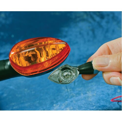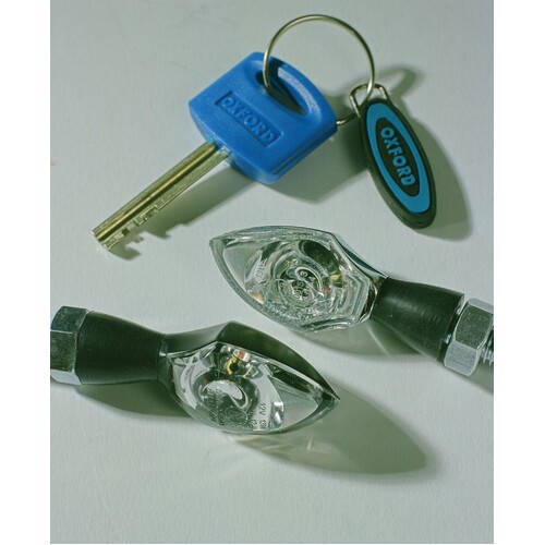 Replace your standard indicators with these beautifully crafted, miniaturized, high performance components. A battery of high intensity Light Emitting Diodes (LEDs) put basic, low wattage bulbs in the shade. With up to 10,000 MCD (1000 candle power) of lighting energy that is optimized by the latest ‘Honeycomb’ lens technology - helping to maximize your visibility when maneuvering. As well as their intelligent design and enhanced performance, Oxford Eyeshot LEDicators boast a much longer life-span than conventional bulb-lit indicators, so you can spend more time enjoying your bike and less time maintaining it.