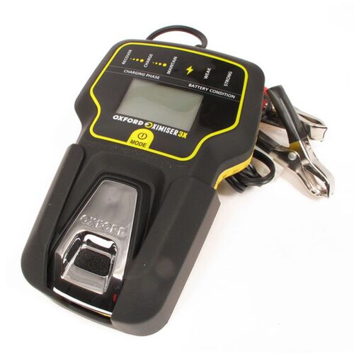 The Oxford Oximiser 3X has been completely redesigned and tested in the UK using top quality long life components. A soft-start charging mode improves recovery of deeply discharged batteries as low as 8 volts. Intelligent charging will cycle-charge in an attempt to recover sulphated batteries. Suitable for all 12V automotive batteries including LITHIUM LiFePO4 motorcycle batteries. New voltage sensors quickly detect high current drain and will automatically revert to the most appropriate charge rate. Fast and efficient charging in all modes keeps charge times short and reduces main power consumption. Soft touch rubberised case for improved grip and ruggedness. Up to 3.6Amps charging power for batteries up to 125Ah capacity. Three charging mode power options and induction cooling.