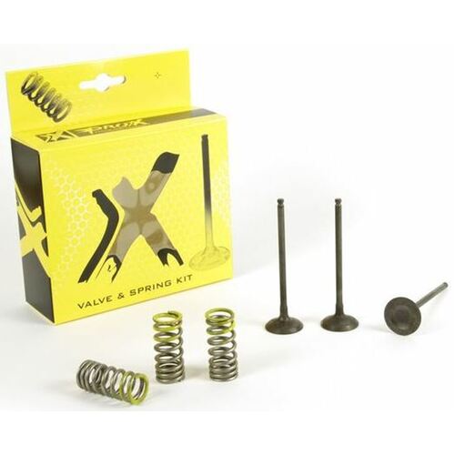 The Pro-X Steel Valve & Spring Kit are offered as an alternative to the OEM Titanium valves. Steel Valves last longer and require less adjustment than titanium valves.