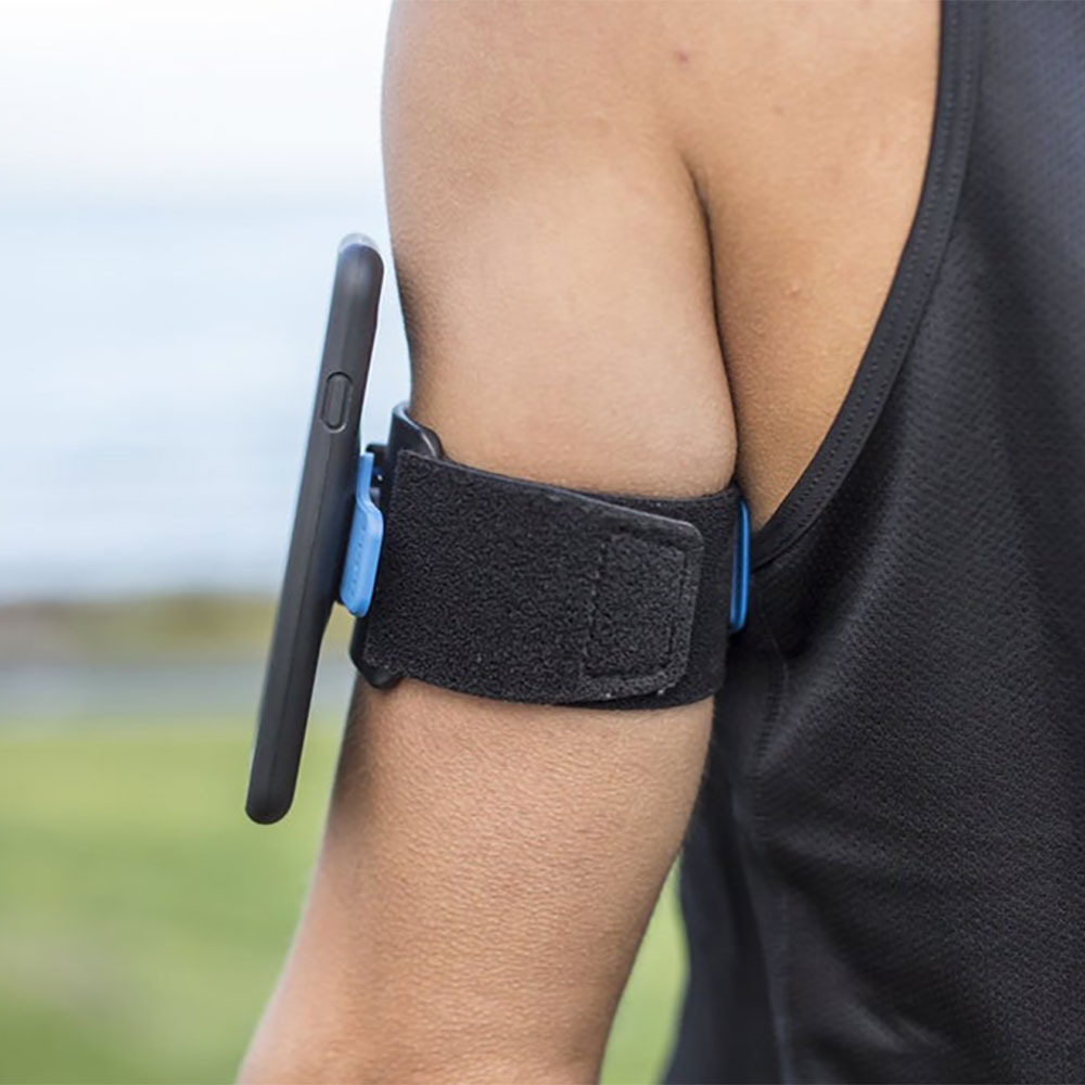 The Quad Lock® Sports Armband fits comfortably and securely onto your arm or over activewear. The dual-stage lock means that your smartphone sits slightly raised from the armband, so there is no friction between your arm and the smartphone.