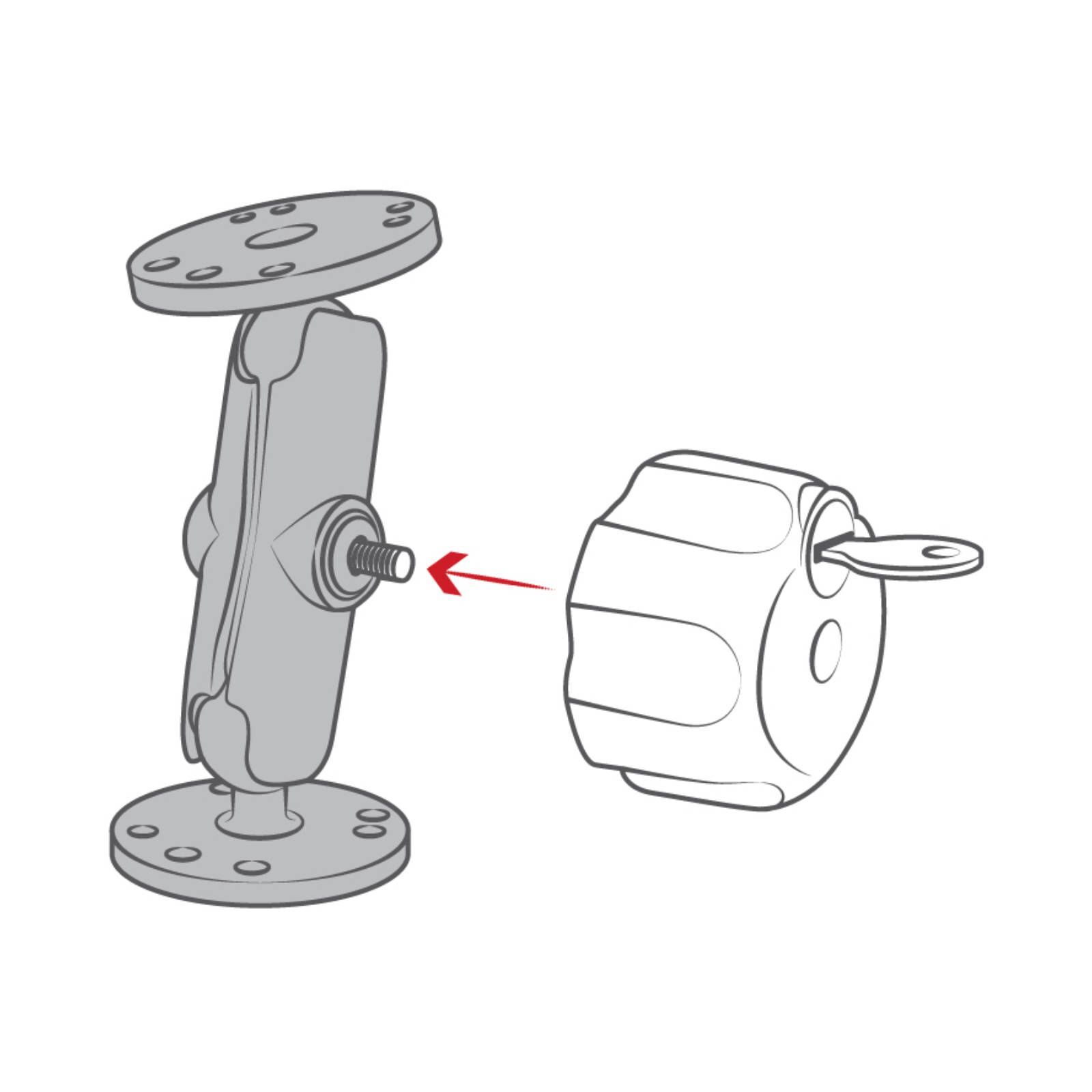 The RAM locking knob, includes a brass 1/4"-20 thread, for 1" (B size) socket arms; this allowing you to disengage the screwing of the knob. Once you have set your mount in the location you need, you can lock it in place and feel safe that your mounted device will stay right where you left it.