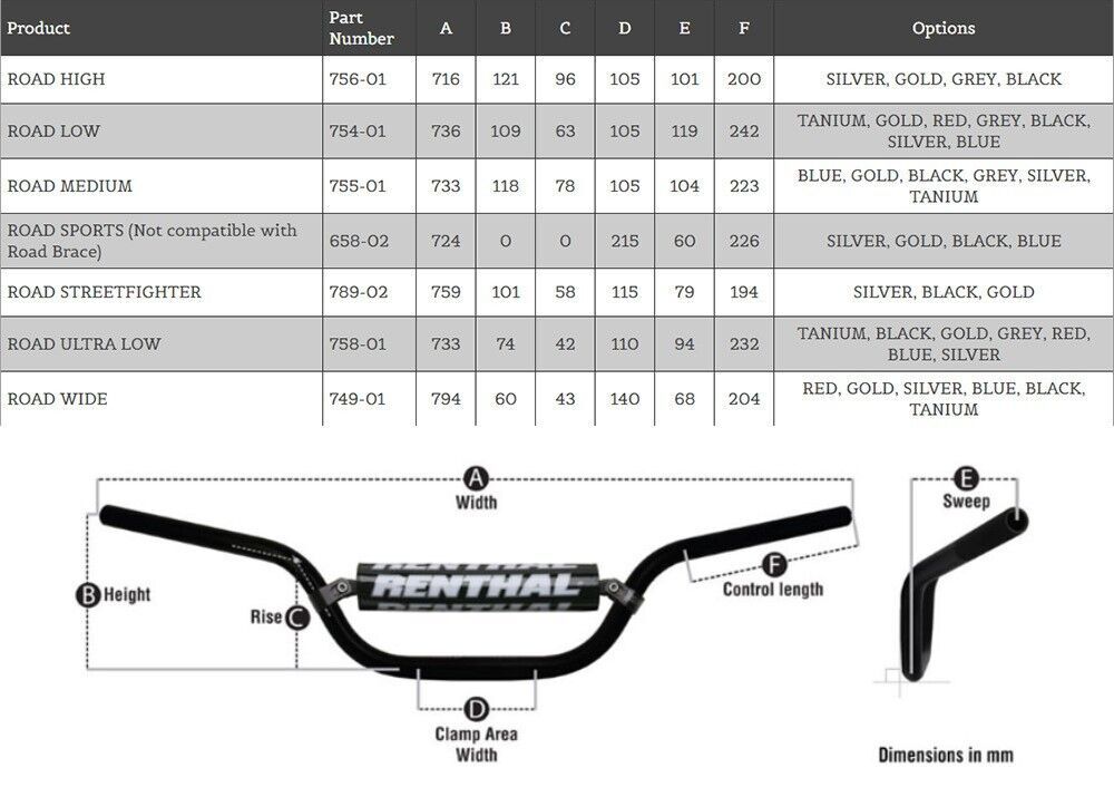 - Each Road handlebar is made from the same 7010 aluminium like Renthal championship winning motocross bars, shot peened to increase fatigue life and anodised to inhibit corrosion.