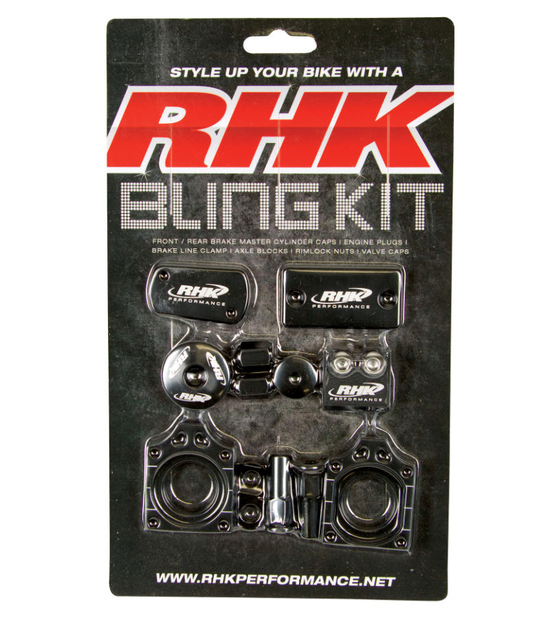 - Kit Includes: Front and Rear Master Cylinder Caps, Axle blocks, Engine plugs, Brake line clamp, Rim lock Nuts and Valve Caps