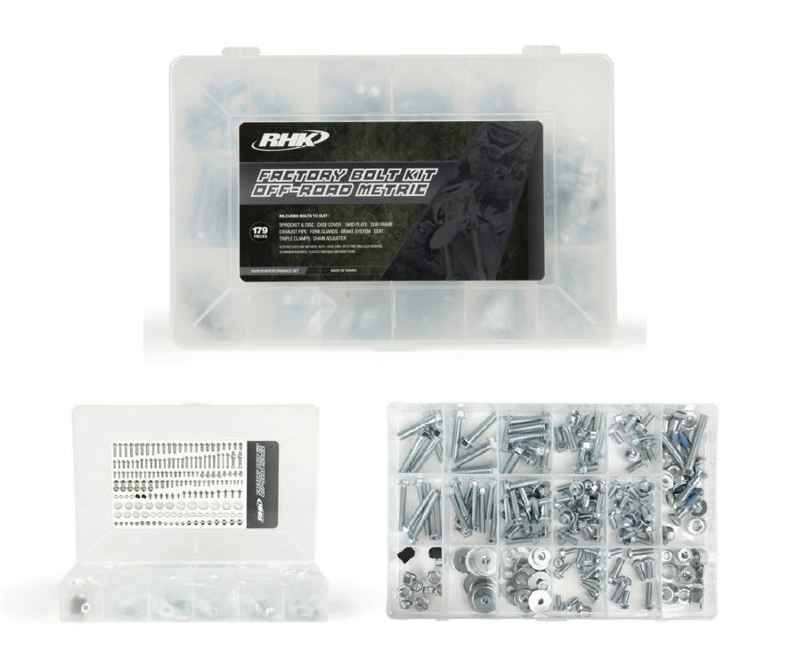 It is suitable for fastening most parts of your bike and includes an assortment of hex flange bolts, fender washers, OEM style bolts, nuts, and more. There is also a full set of sprocket bolts and chain adjuster bolts and nuts. It is the perfect kit if you work on a range of off road bikes.