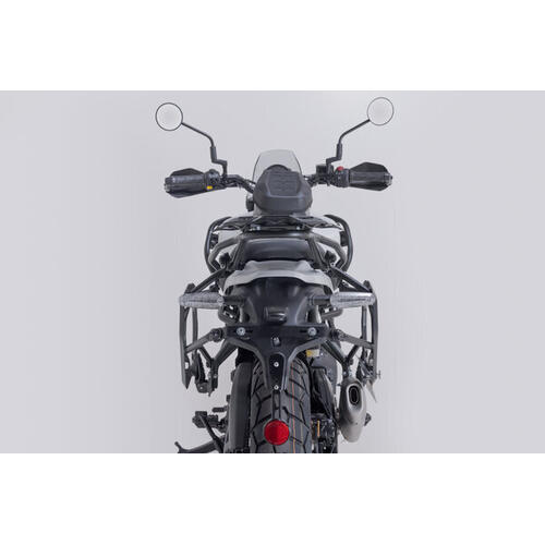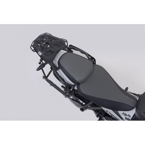 The Adventure set Luggage contains PRO side carriers to fit the Aprilia Tuareg with the matching ADVENTURE-RACK. The side carrier and rack are fastened to the bike-specific attachment points and offer sturdy support for the black TRAX ADV aluminium cases.
