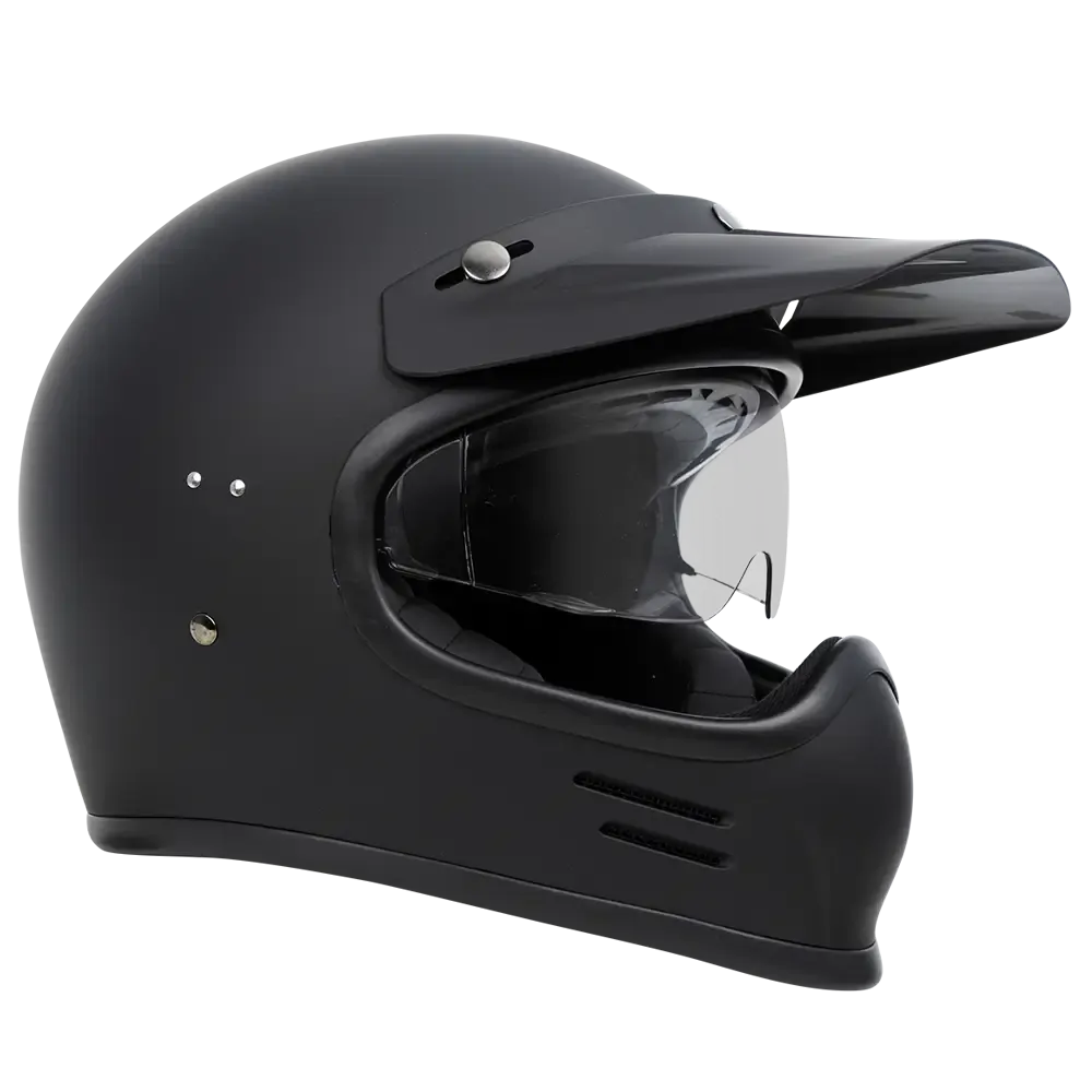Where vintage style meets modern safety. The RXT Heritage delivers classic looks with all the safety, fit, comfort, and features expected in today s helmets. Perfect for riders who appreciate retro design without compromising on performance. FEATURES: Lightweight ABS construction Premium removable/washable lining, with soft-feel retro stitched padding design Clear Internal drop-down visor system with an additional interchangeable tinted visor included Visor removal tool included for easy customisation Classic MX peak included in the box Front air inlet vents for added airflow Secure Double D-Ring buckle system Complies with AS/NZS 1698 safety standards Available sizes: S to XL