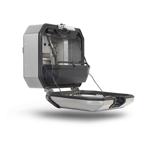 The TR36R side case is designed, engineered and made 100% in Barcelona. Made from hardened aluminium alloy, a stronger and lighter type of aluminium which allows a reduced cross section of 1.2mm to obtain a minimum weight with maximum resistance. AISI 304 stainless steel hinges and pegs so you can set the case on the ground without it rolling over, and ABS case guards to protect from impacts.