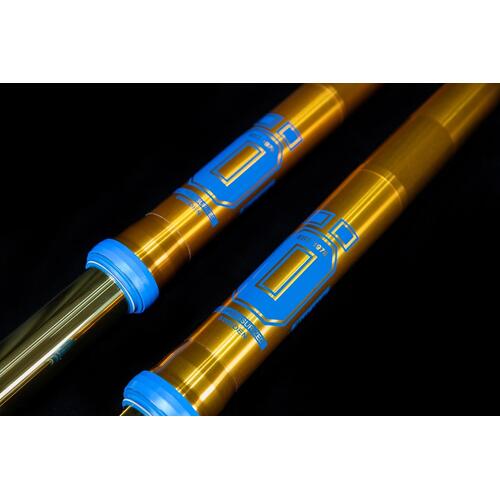 Öhlins’ signature blue and gold color scheme