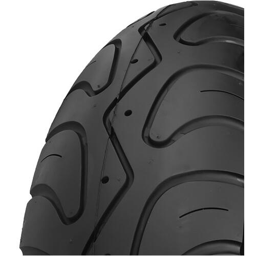 Shinko’s 006 scooter offers a streamlined tread pattern designed to reduce rotating resistance while improving water drainage.