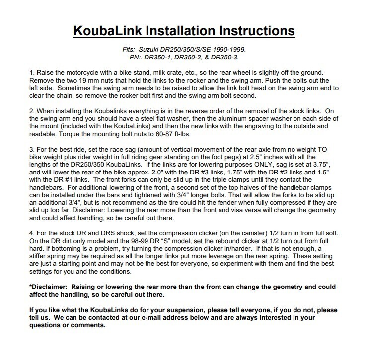 KoubaLink specialises in motorcycle lowering and performance linkages for off-road and dual-sport rear suspension systems. Compromise is not an option at KoubaLink. Listening to riders from all over the world explain where and how they use their off-road and dual-sport bikes. With their input, Koubalink manufacture products that add to your motorcycling experience and make it a little more enjoyable.