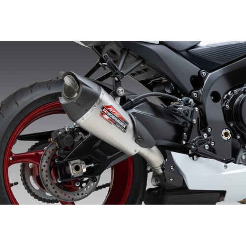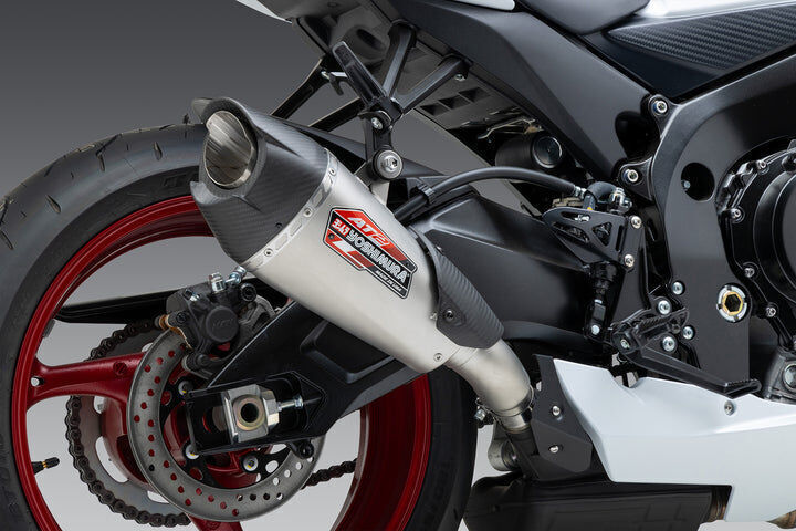 The AT2 has style, performance and sound that is second to none. The GSX-R 600/750 is deserving of such a product like the AT2. A faceted rear cap enclosed by a beautiful matte carbon fiber AT2 end cap and custom heal guard has quickly become a main stay for the Yoshimura enthusiast.