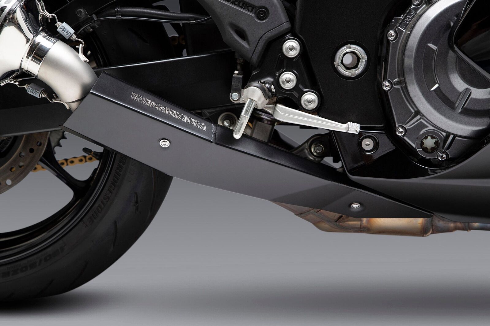 Want more than an esthetic reason? Of course there are performance advantages. The R-77 dual mufflers reduce weight by 11.2 pounds from stock! Horsepower and torque are up, and the exhaust note of the dual Yoshimura R-77's is as classic as the Hayabusa name! This system comes with left and right aluminum heat-shields that are powder coated and have the Yoshimura brand name laser etched on each side.