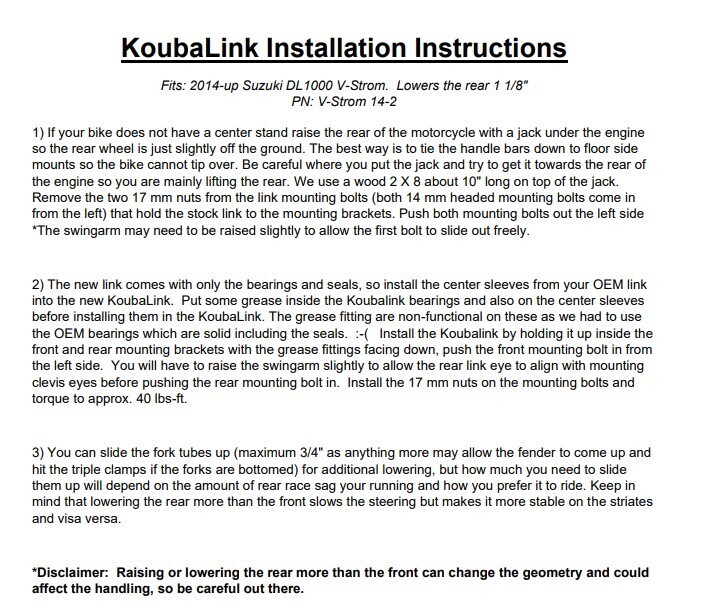 - Disclaimer: Lowering the front and/or rear of your motorcycle will change the geometry and may affect the handling, use caution after making changes/adjustments.