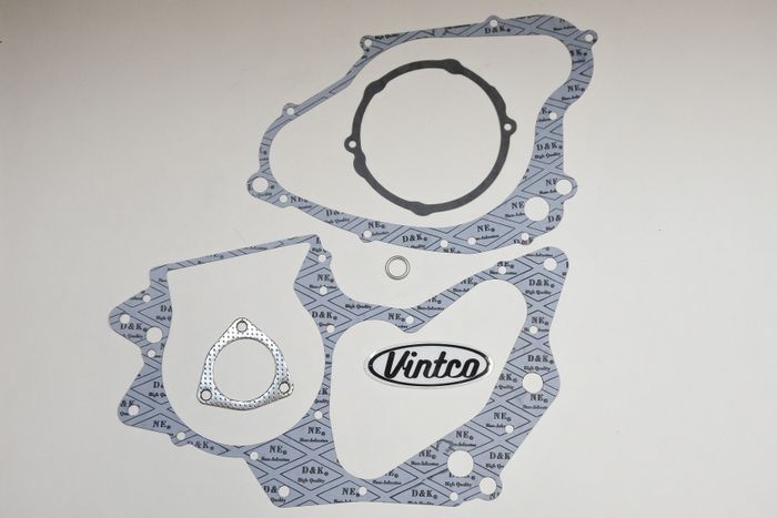 VintCo has all new engine gasket kits to help on your engine lower end rebuild. These gaskets are made with modern materials and manufacturing techniques to ensure an as good or better than OEM fitment and performance. The OEM part numbers are provided as a reference to ensure exact fitment. This kit fits all 1983-1984 RM500 models. This engine gasket kit includes the crankcase gasket, clutch cover gasket, magneto cover gasket, exhaust pipe gasket, and drain plug gasket to complete your build with ease. These newly manufactured gaskets from VintCo will help you keep the ride going!