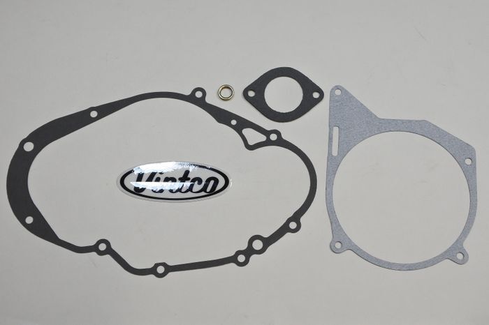 VintCo has all new engine gasket kits to help on your engine lower end rebuild. These gaskets are made with modern materials and manufacturing techniques to ensure an as good or better than OEM fitment and performance. The OEM part numbers are provided as a reference to ensure exact fitment. This kit fits all Suzuki 1978-81 RM80 and 1982-83 RM60 models. This engine gasket kit includes the clutch cover gasket, magneto cover gasket, exhaust gasket, and drain plug gasket to complete your build with ease. These newly manufactured gaskets from VintCo will help you keep the ride going!