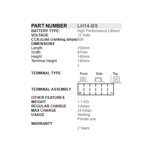 A normal lead acid motorcycle battery is designed to last for 200 300 cycles, whereas SSB PowerSport Lithium Batteries are designed to last for over 2,000 cycles (more than 10 Years design life). In addition, they can sit unused for over a year without losing charge and can also be charged extremely quickly without damaging the battery.