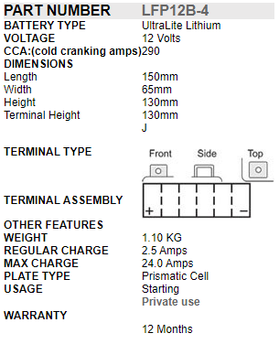 - Ultra Light Weight - 1/3 of a normal lead-acid battery