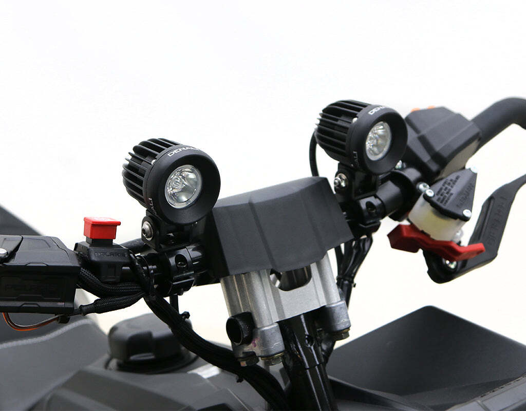 These clamps are intended for mounting lights to OEM or aftermarket crash bars, handlebars and frame tubes commonly found on adventure bikes, dual sport bikes, ATVs and snowmobiles. The clamps allow the lights to be positioned to the inside of the bars, ensuring they will be protected in a tip over.