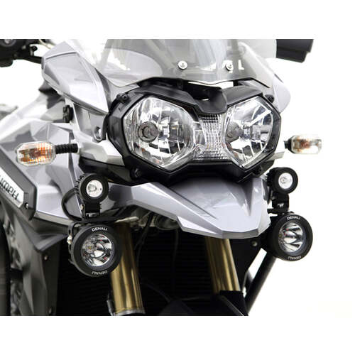This vehicle specific driving light mount allows you to mount any DENALI driving light in the optimum location on your motorcycle. This kit includes beefy powder coated steel brackets with and M8 mounting hole and all necessary mounting hardware.