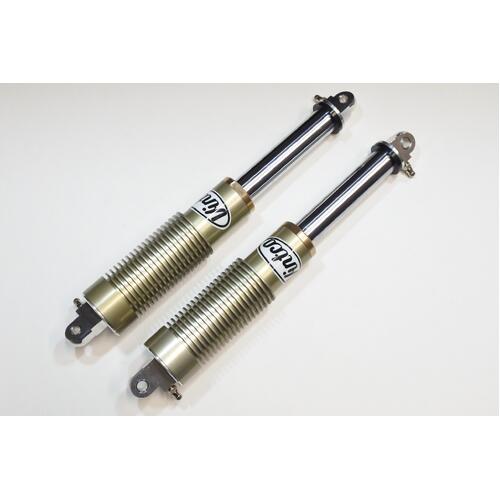 VintCo Air Shocks are an exact duplicate of the original air shocks so popular in the late 1970’s. We have all sizes ranging from 13.5” to 17.5”. Just like the originals, our air shocks are adjustable with two chambers, high and low pressure, giving you tremendous flexibility for setting your bike’s suspension exactly as desired. No more trying to find unobtanium springs to match your weight. The VintCo Air Shocks come assembled and ready for installation-just add air or nitrogen. Remember, like the originals, some modifications may be required to install on your specific dirt bike (various bushings are supplied). These new air shocks are fully rebuildable with VintCo rebuild kits and all shocks are hand assembled in the USA. Includes manual and spacers with all new components.