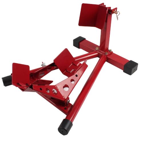 The Whites Front Wheel Chock 4 is ideal for your road bike when cleaning, storing, transporting or performing repairs/routine maintenance. Constructed with an innovative swivel cradle mounting your bike is hassle-free. The chock is compatible with 16-18 inch wheels with a 110-130mm width tyre, while the rubber feet prevent the stand moving when putting the bike in place. Manufactured from heavy-duty steel tubing the chock is strong and durable and complete with a thick red powder coat for a great look and corrosion resistance.