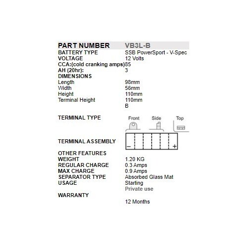 - Replacement For: CB3L-A, CB3L-B, YTX3L-BS, MB3U