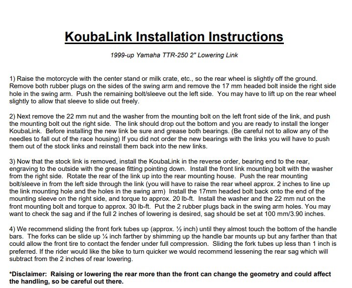 - Disclaimer: Lowering the front and/or rear of your motorcycle will change the geometry and may affect the handling, use caution after making changes/adjustments.