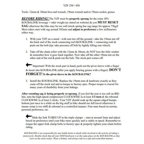 KoubaLink specialises in motorcycle lowering and performance linkages for off-road and dual-sport rear suspension systems. Compromise is not an option at KoubaLink. Listening to riders from all over the world explain where and how they use their off-road and dual-sport bikes. With their input, Koubalink manufacture products that add to your motorcycling experience and make it a little more enjoyable.